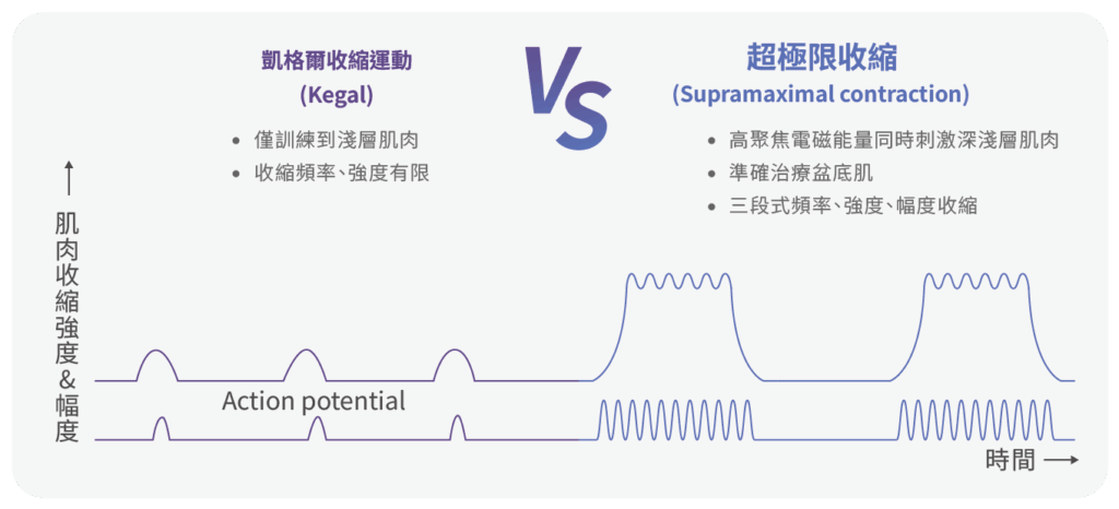 EMSELLA 運用專利HIFEM™高聚焦電磁能量,對深淺層的盆底肌群進行100%的全面刺激。